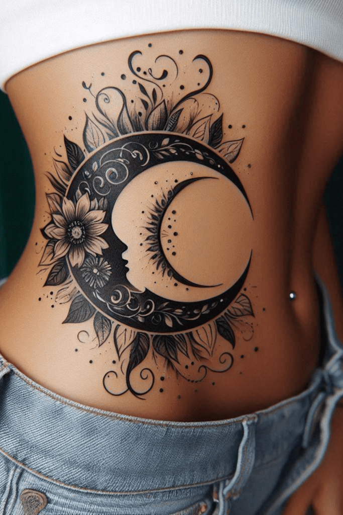 If you’re into celestial vibes and want a waist tattoo that actually says something, this is your sign.