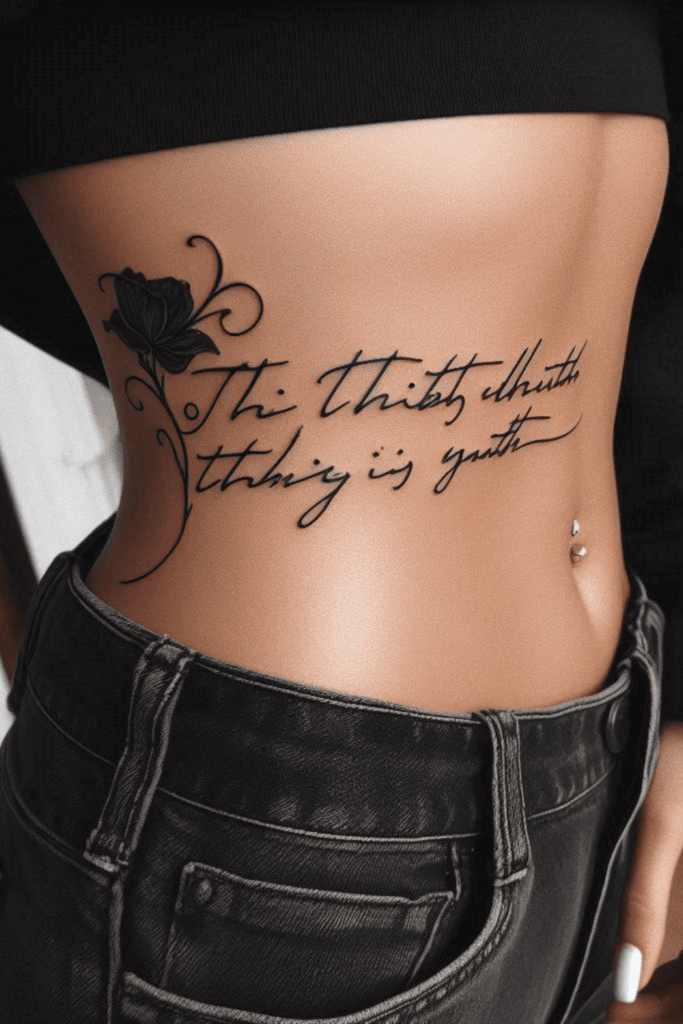 Whether you choose your mantra or your pet’s name, this is a waist tattoo idea that’s meaningful and beautiful.