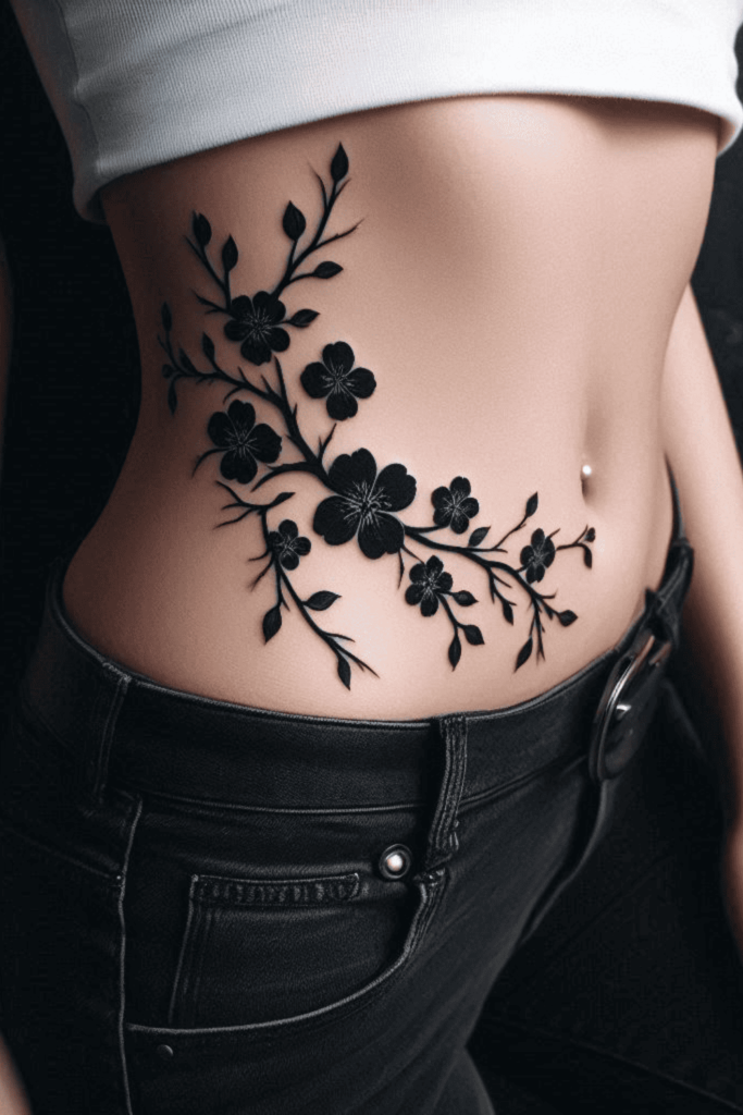 A floral blossom vine waist tattoo brings nature, femininity and a whole lot of style in one go.