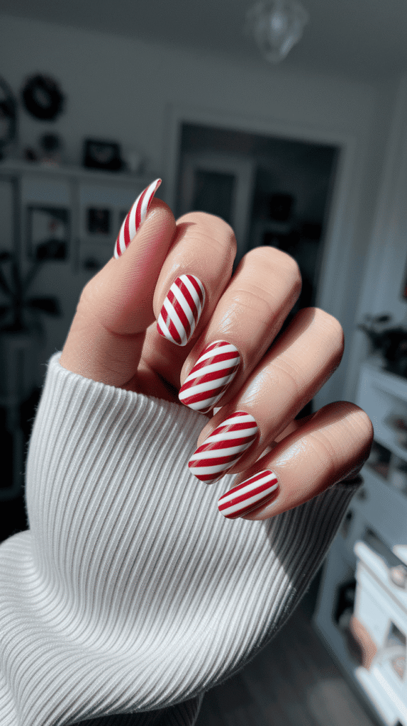 If you love that sweet holiday vibe, these candy cane nails are made for you.