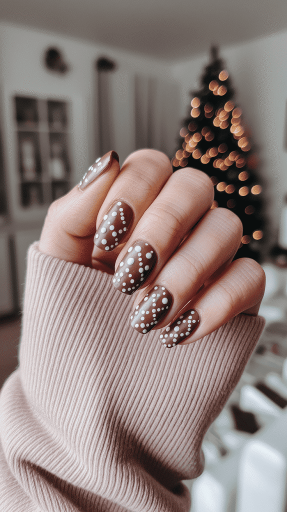 Gingerbread cookie nails remind me of holiday baking and Christmas nights at home.