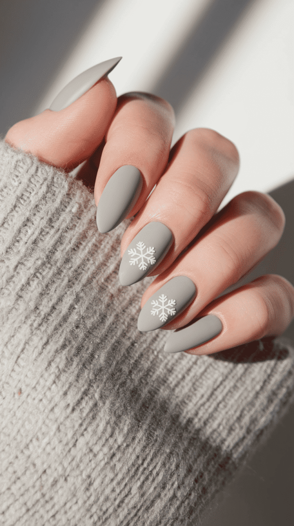 January nails scream cozy, and snowflake accent nails totally get that memo.