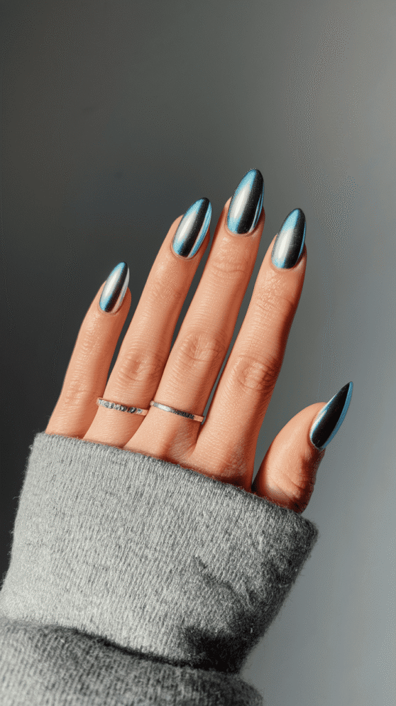 Cool blue chrome nails feel fresh, clean, and super January-coded.
