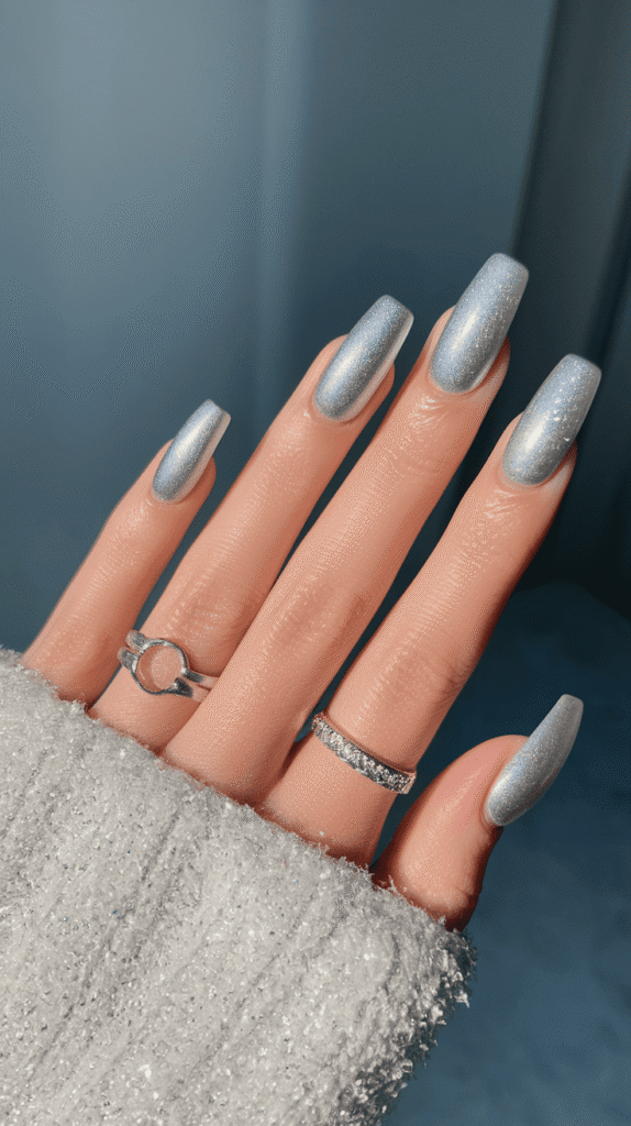 Ice queen silver nails hit that sweet spot between classy and icy confidence.