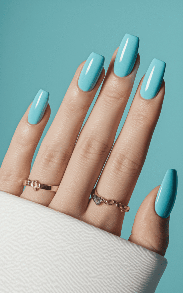 Aqua blue nails bring that early summer vibe into May, and I’m not complaining.