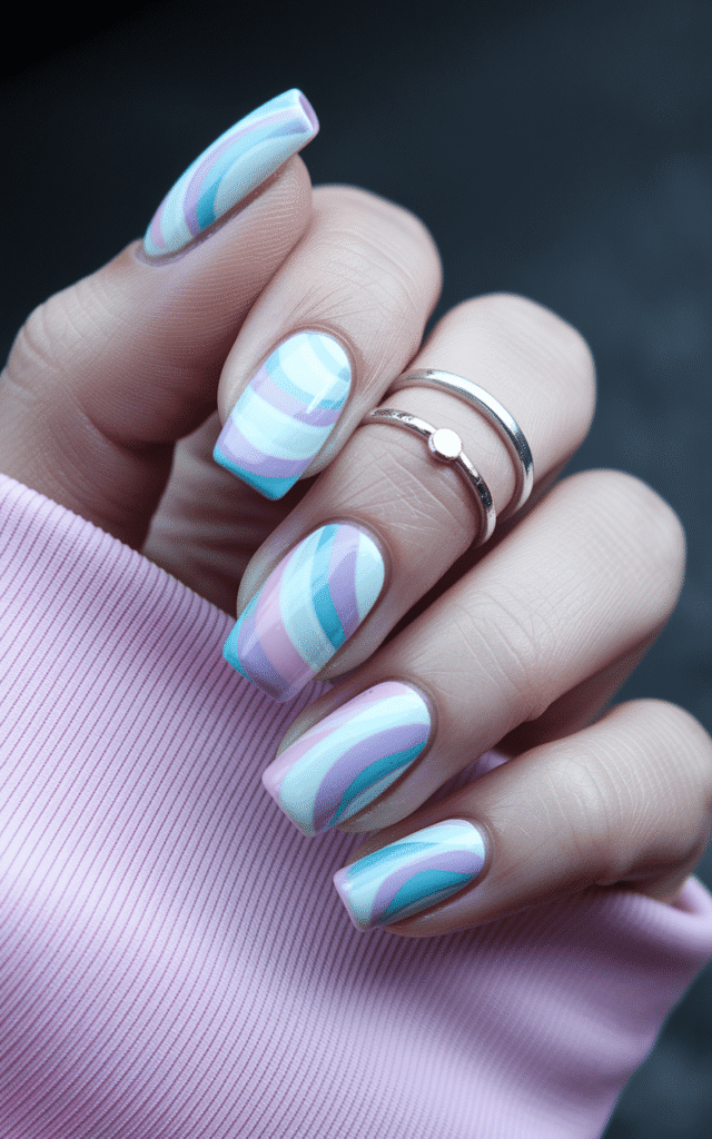 Candy swirl nails bring a playful vibe that feels different from basic designs.
