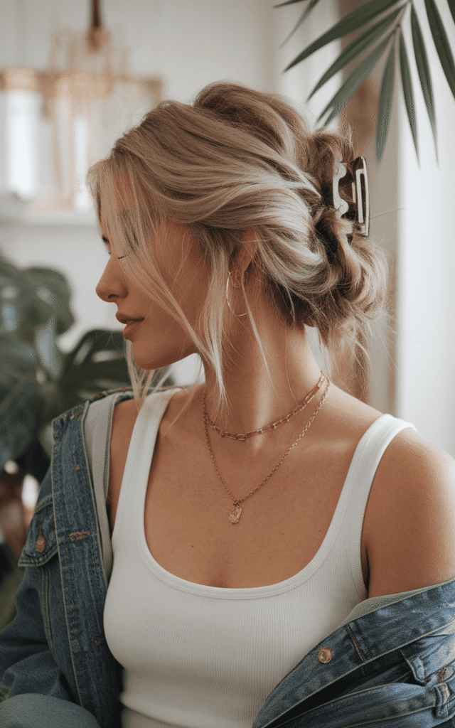 I twist sections and secure them into a low bun, and it instantly looks more put together. It’s still simple, just slightly elevated.